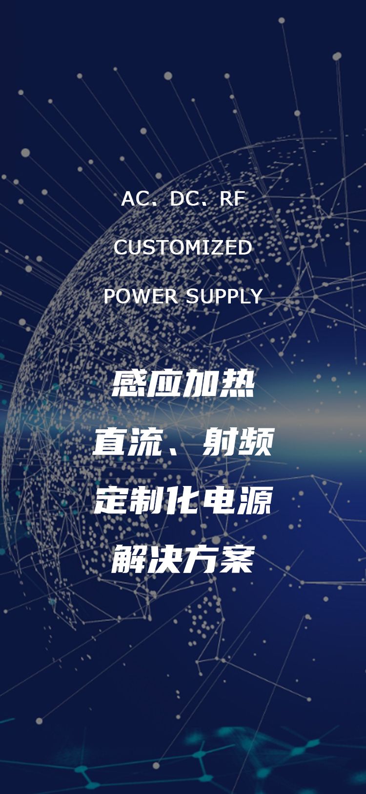 主要產(chǎn)品有全自動智能化低頻/中頻/超音頻/高頻/超高頻感應(yīng)加熱電源、并聯(lián)斬波電源、空冷電源、直流電源、射頻電源、定制化電源等。